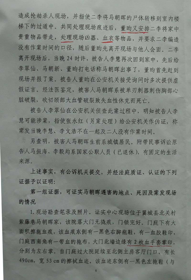 第五组证据,证明案发起因,以及李文浩、李慧杀害马朝晖,被告人董昀帮助伪造现场。