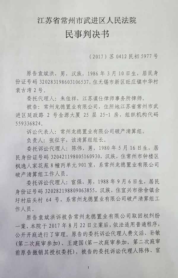 诉讼代表人:梅海平,该公司破产管理人负责人。