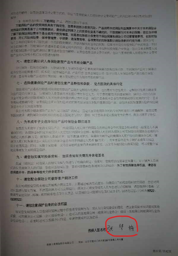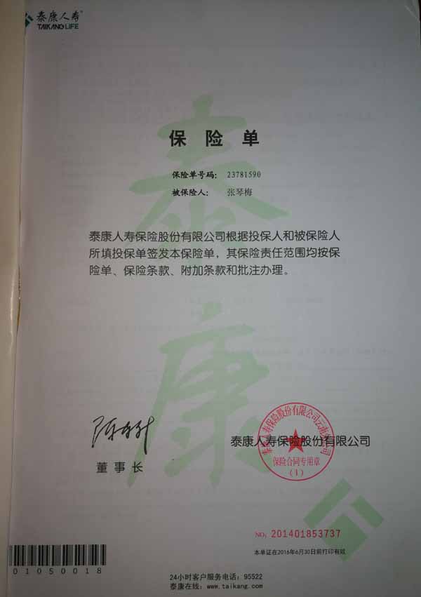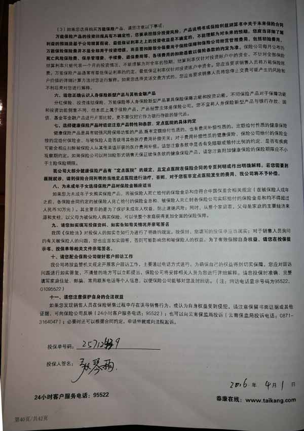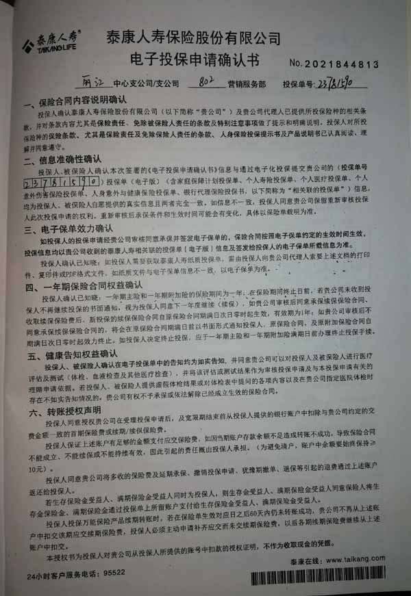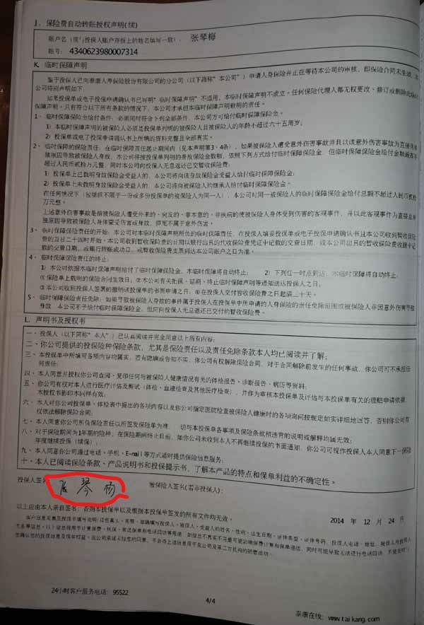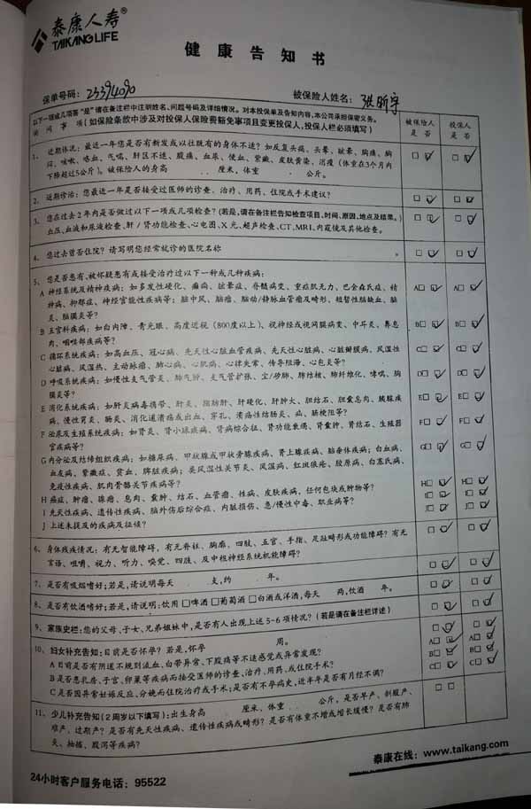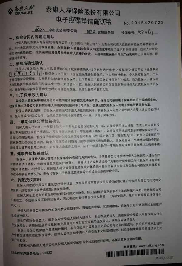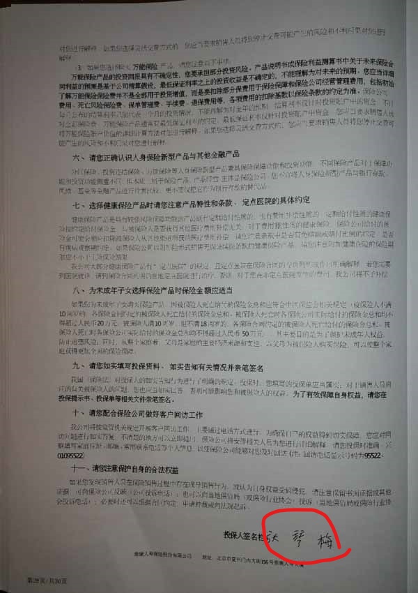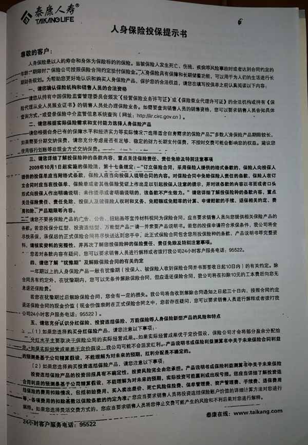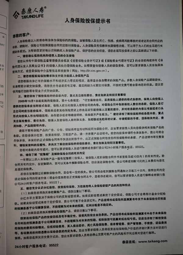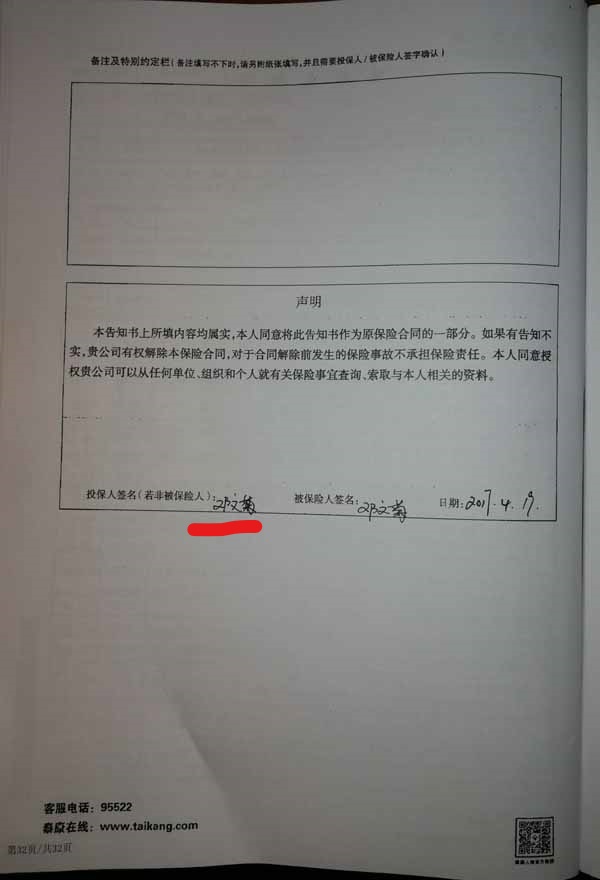 泰康人寿“保险合同虚假签名”案
