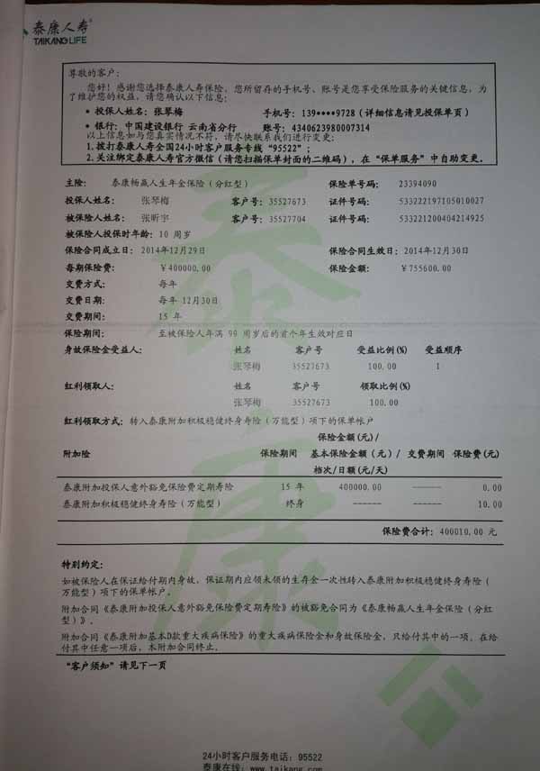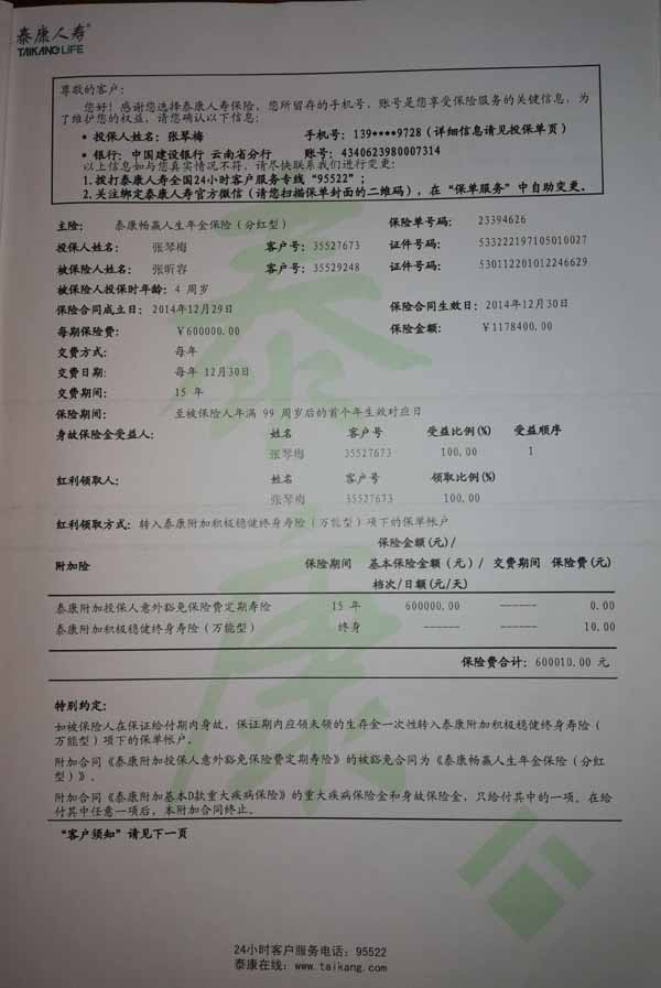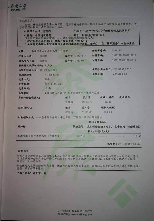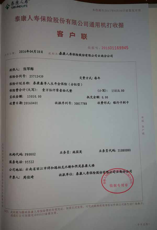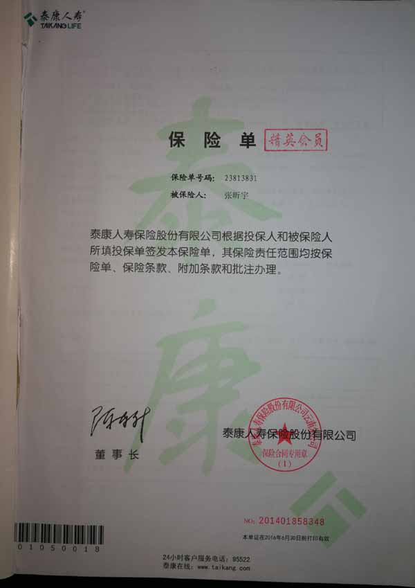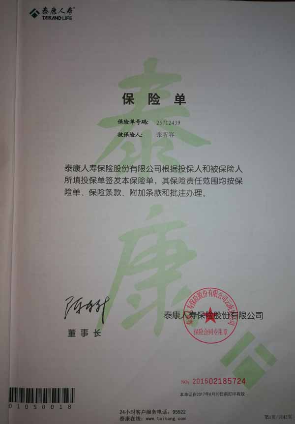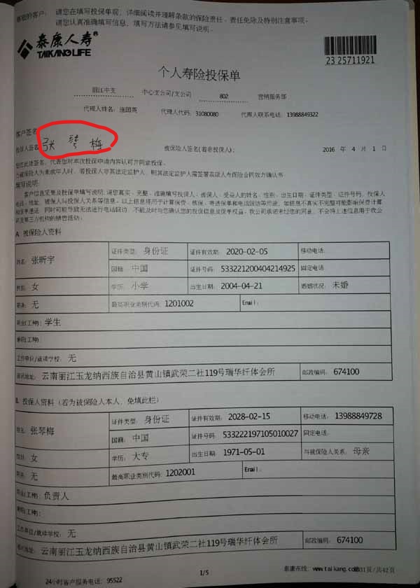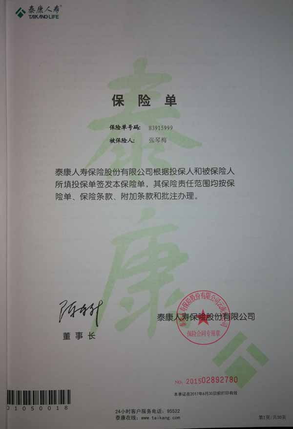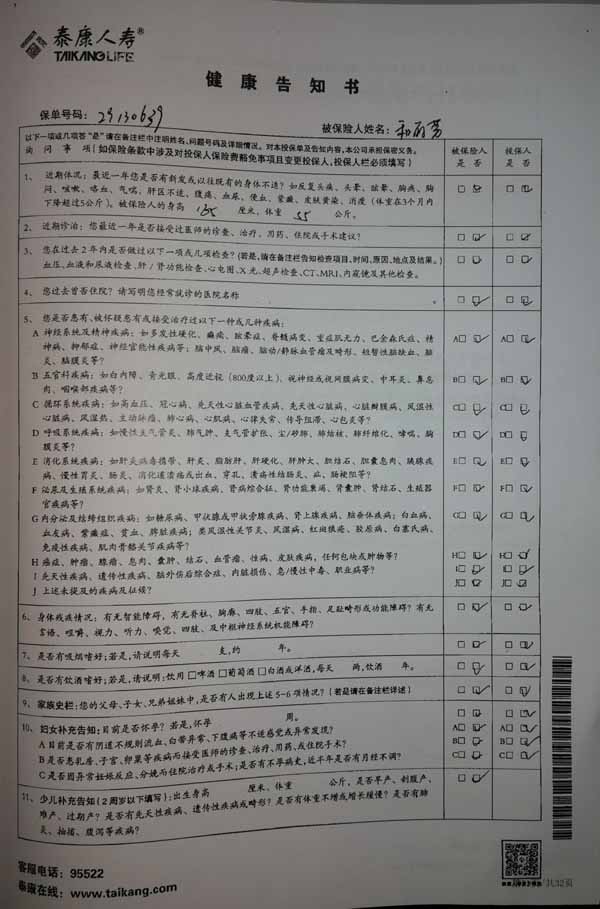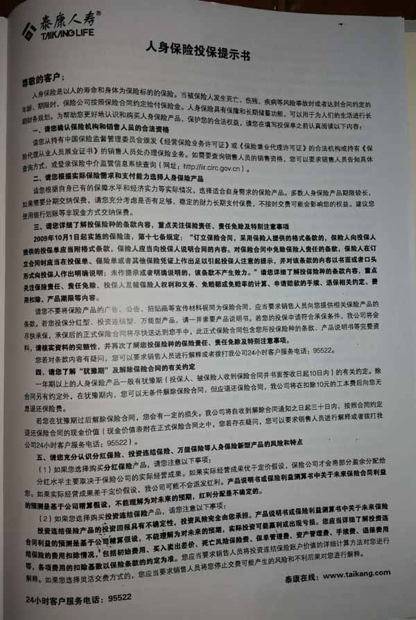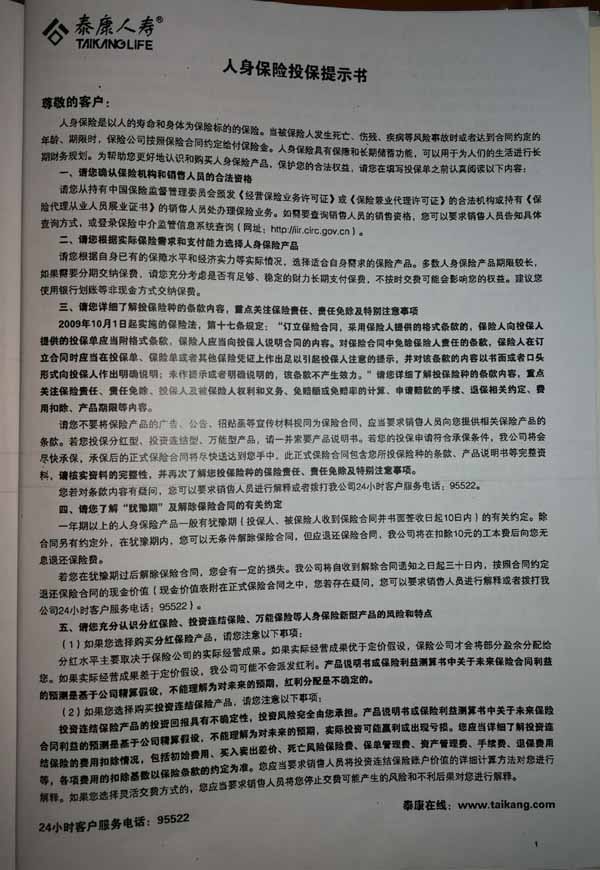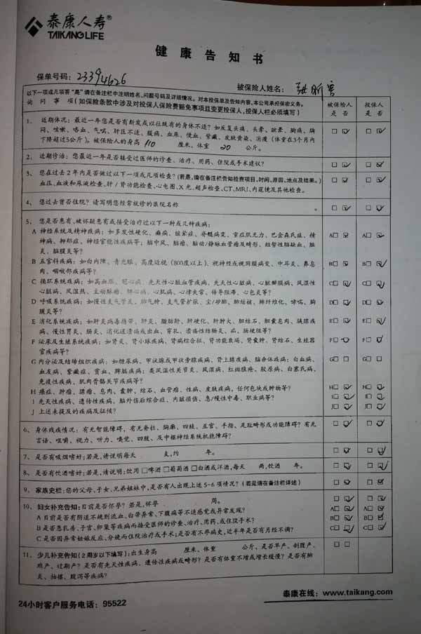 泰康人寿“保险合同虚假签名”案