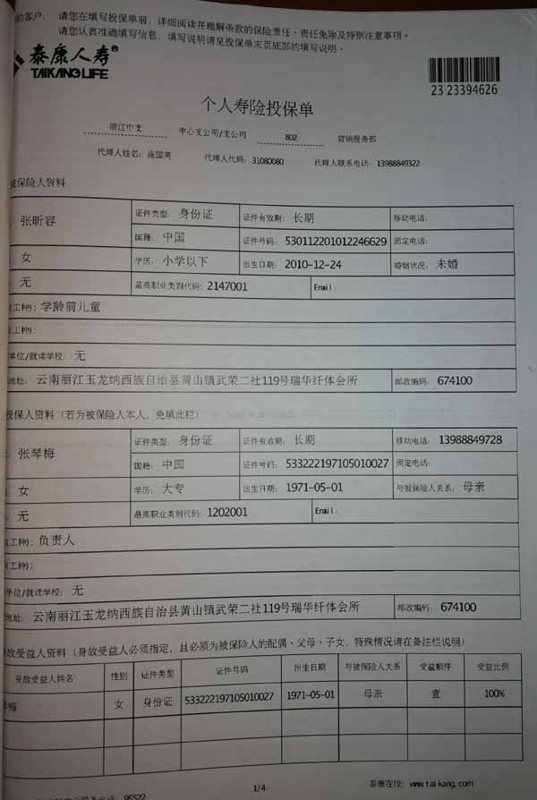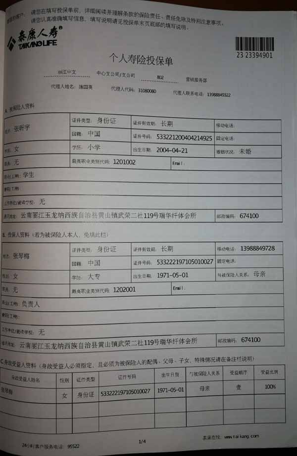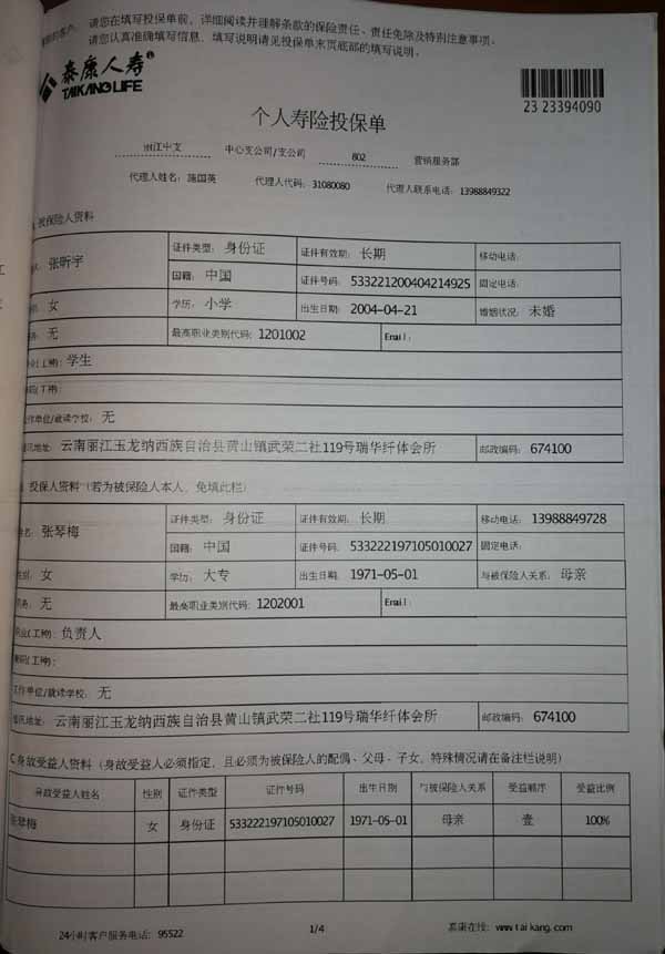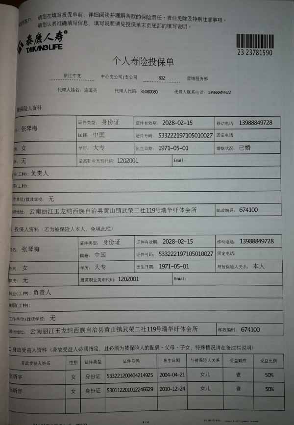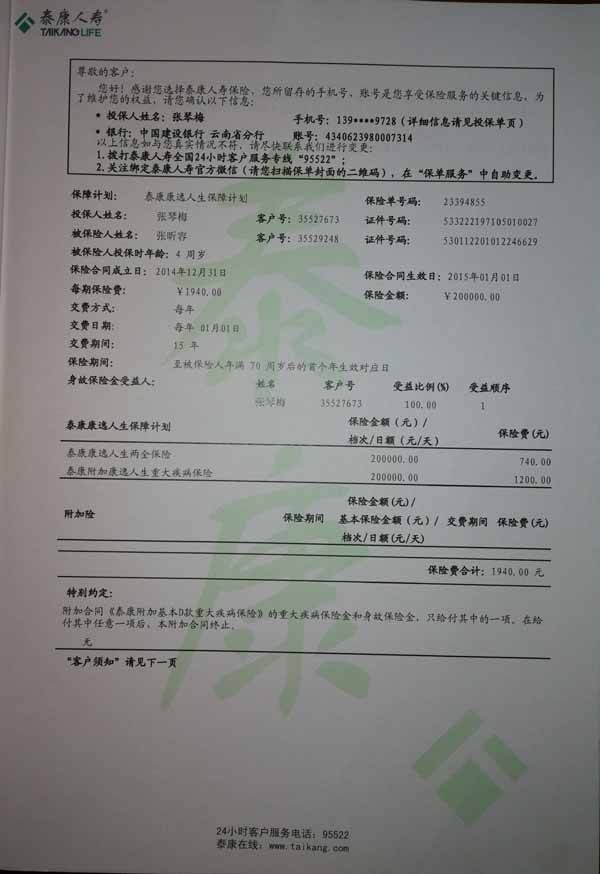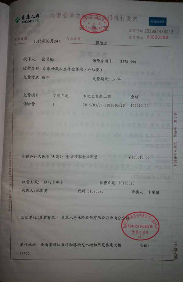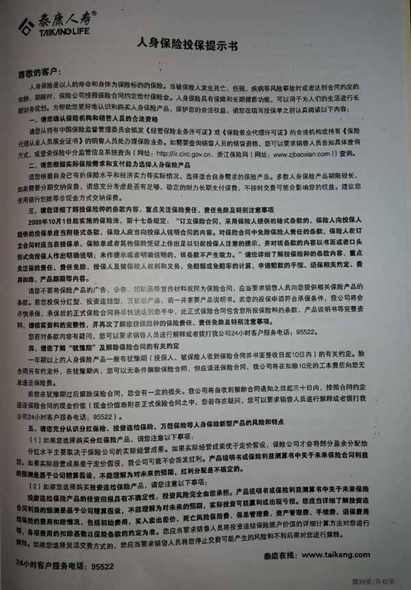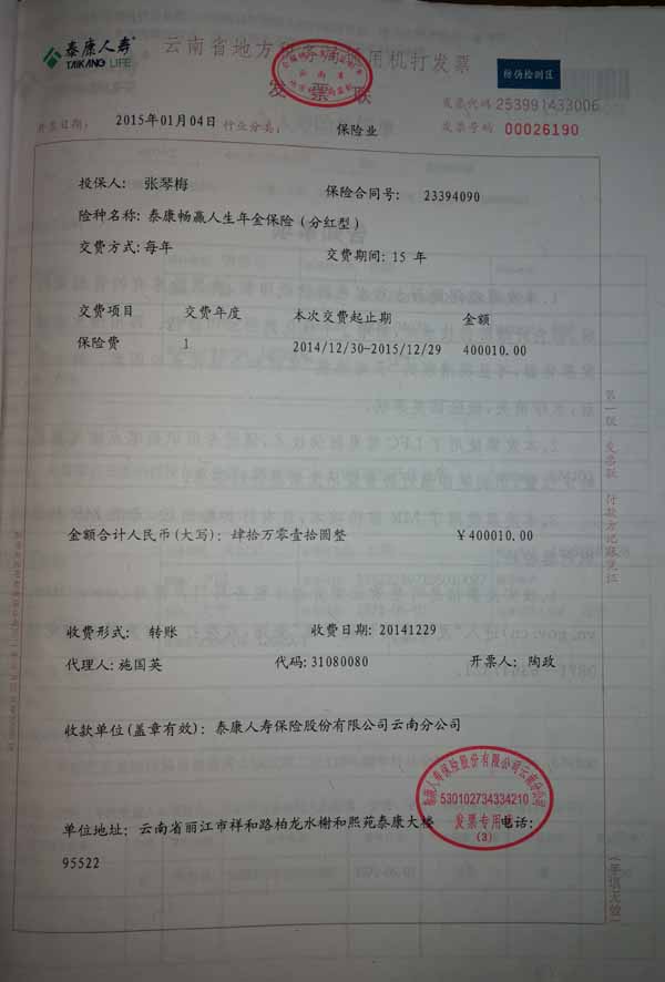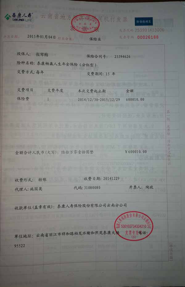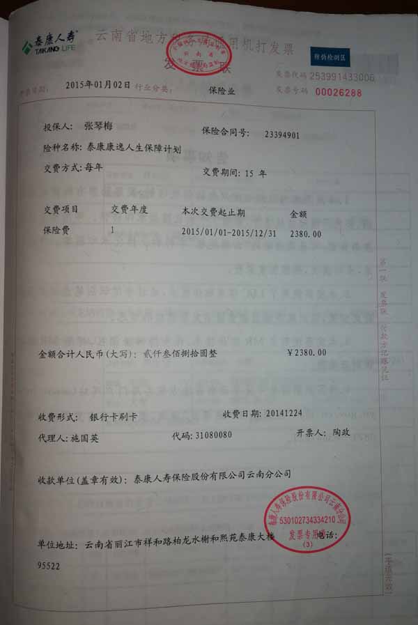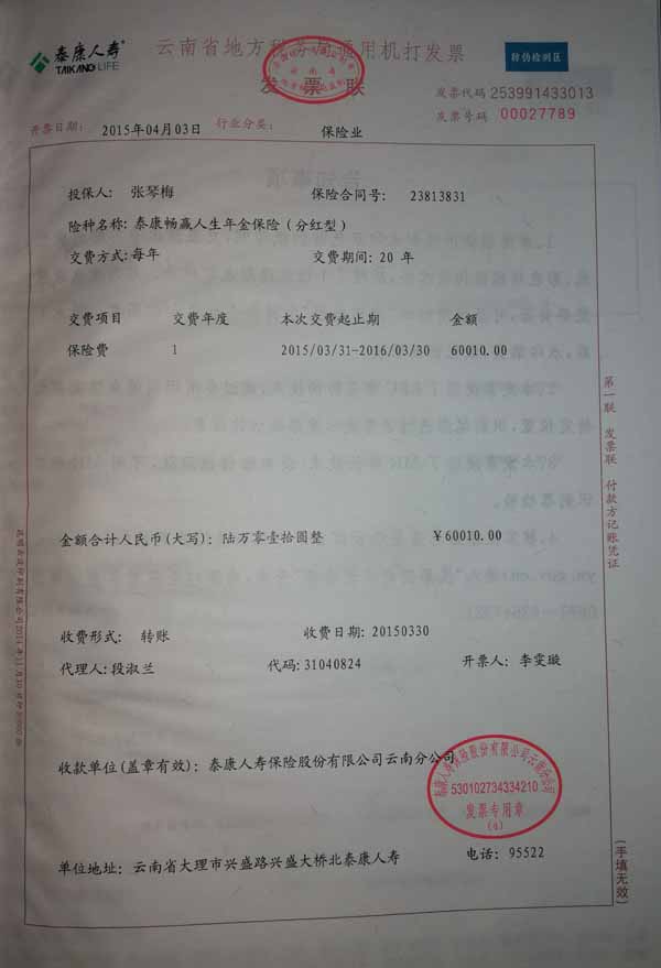 泰康人寿“保险合同虚假签名”案