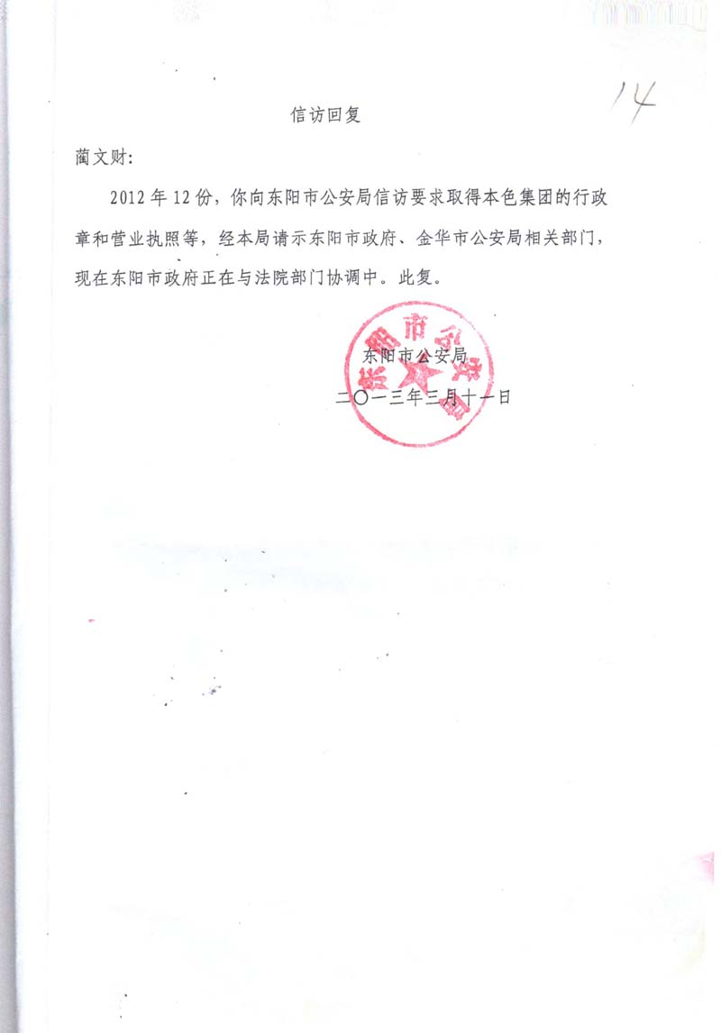 根据东阳市公安局借助东阳市人民法院拍卖平台拍卖本色控股集团有限公司财产的情况,能够得出判决