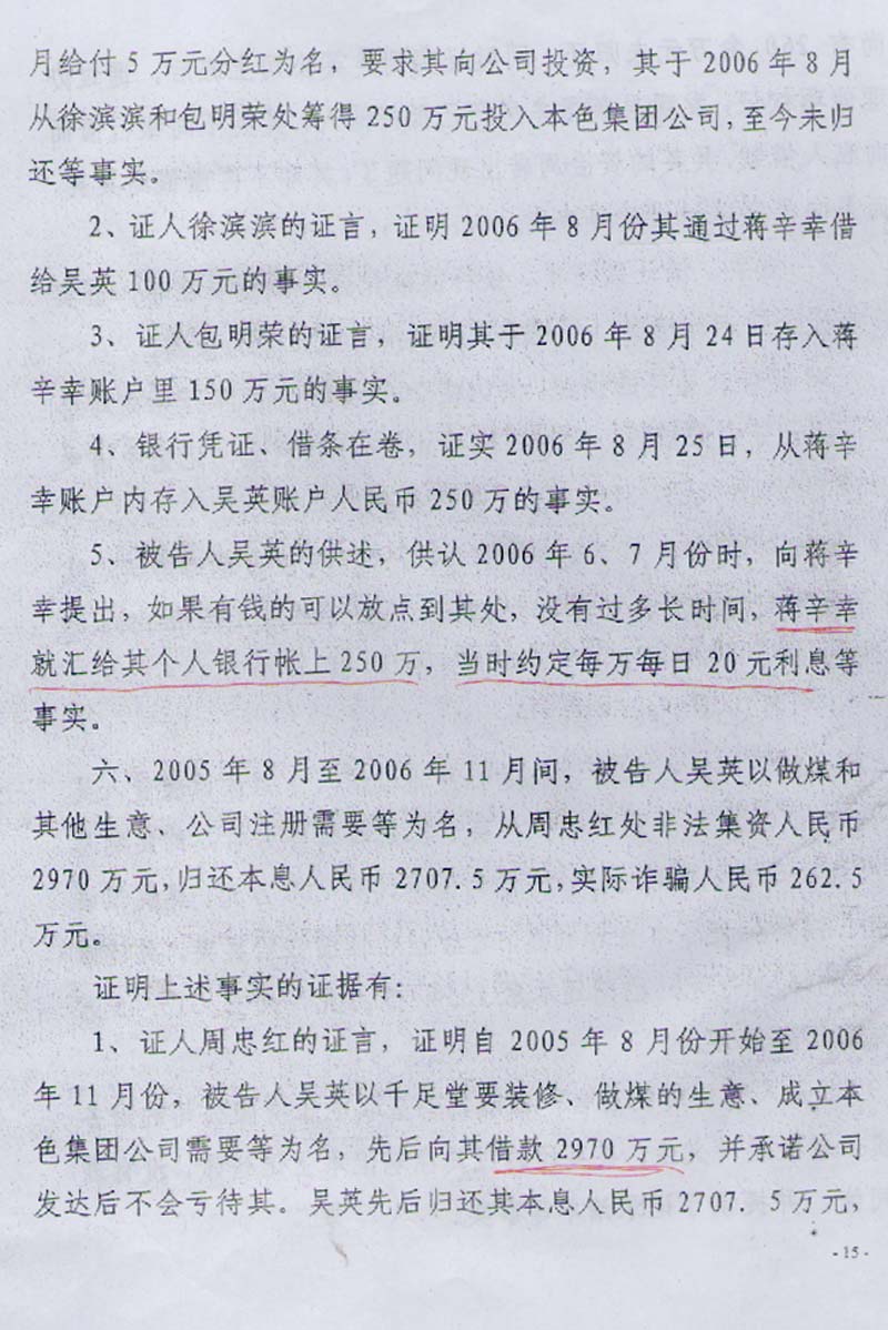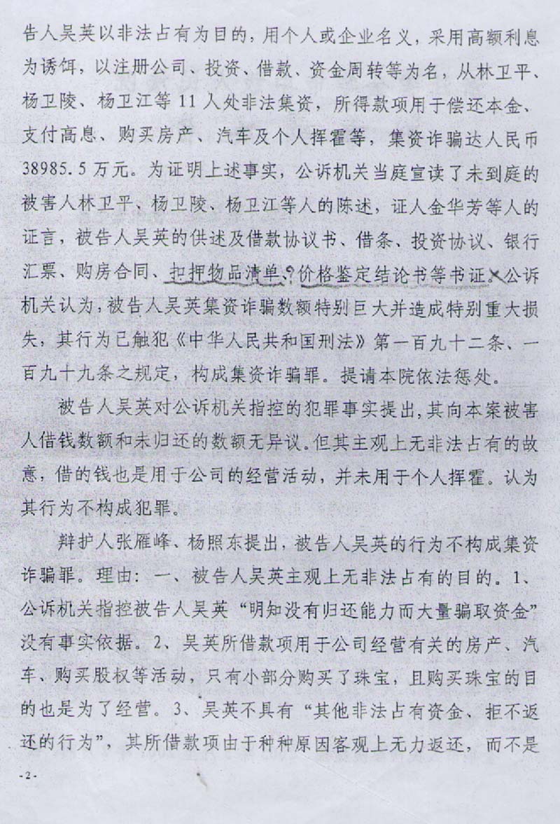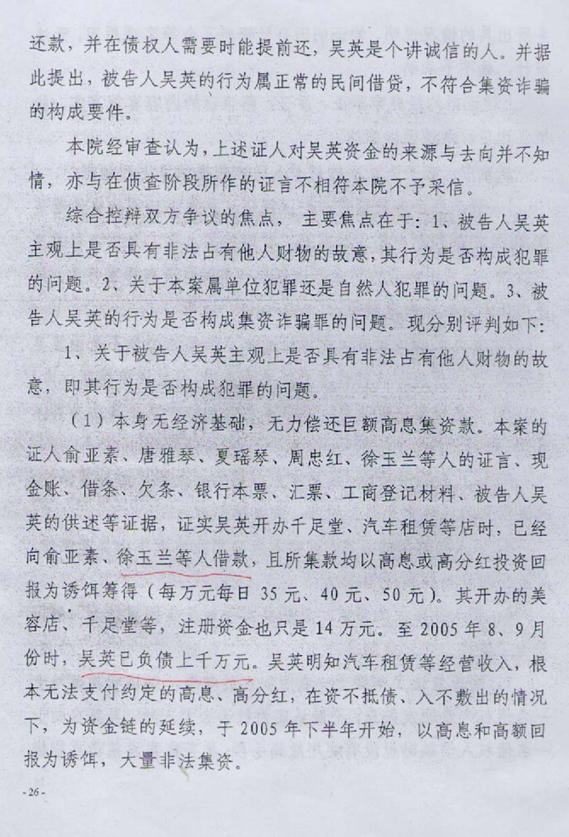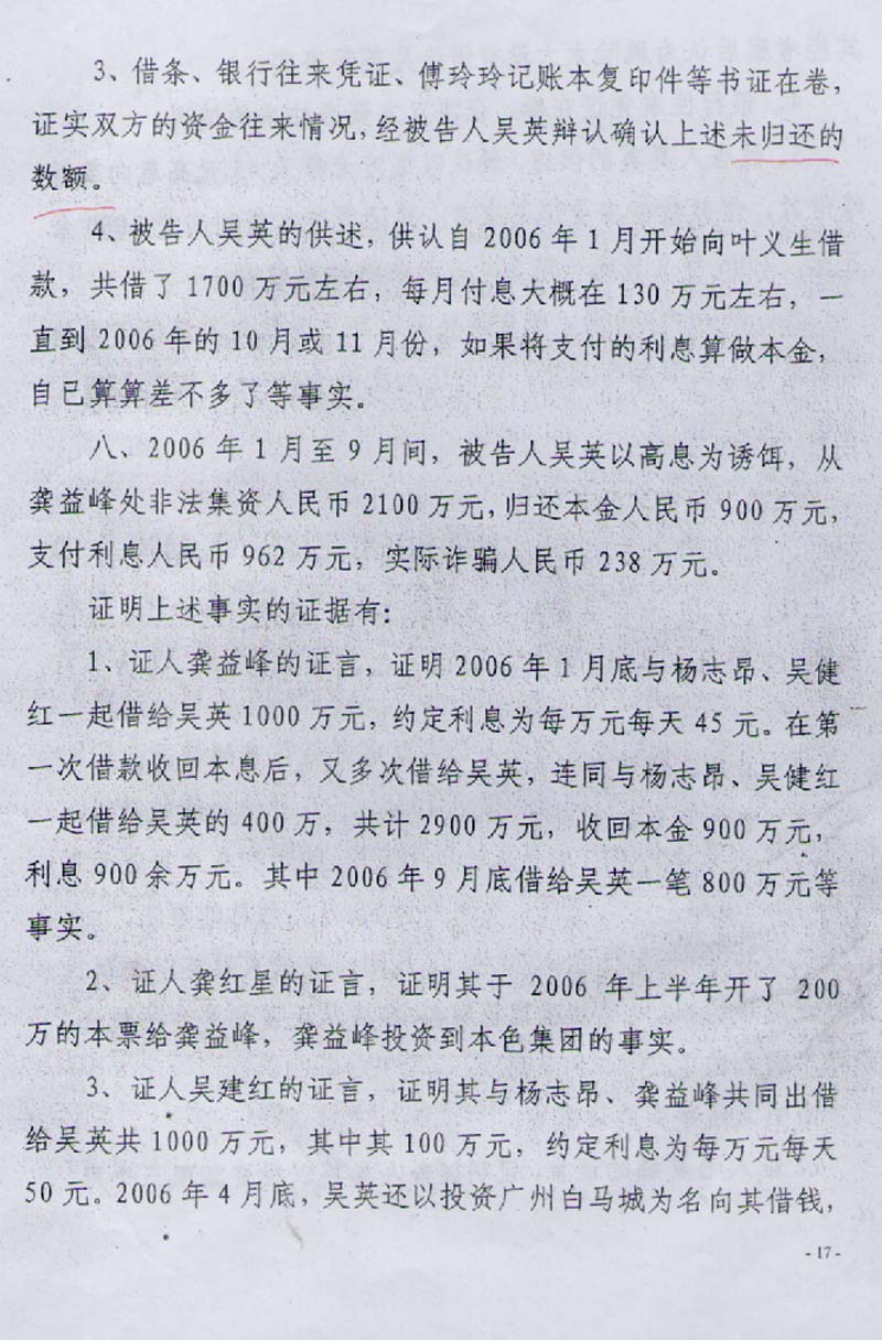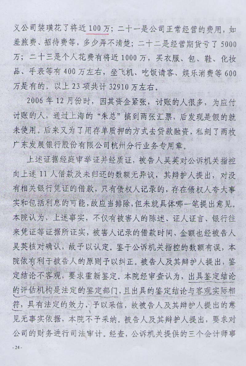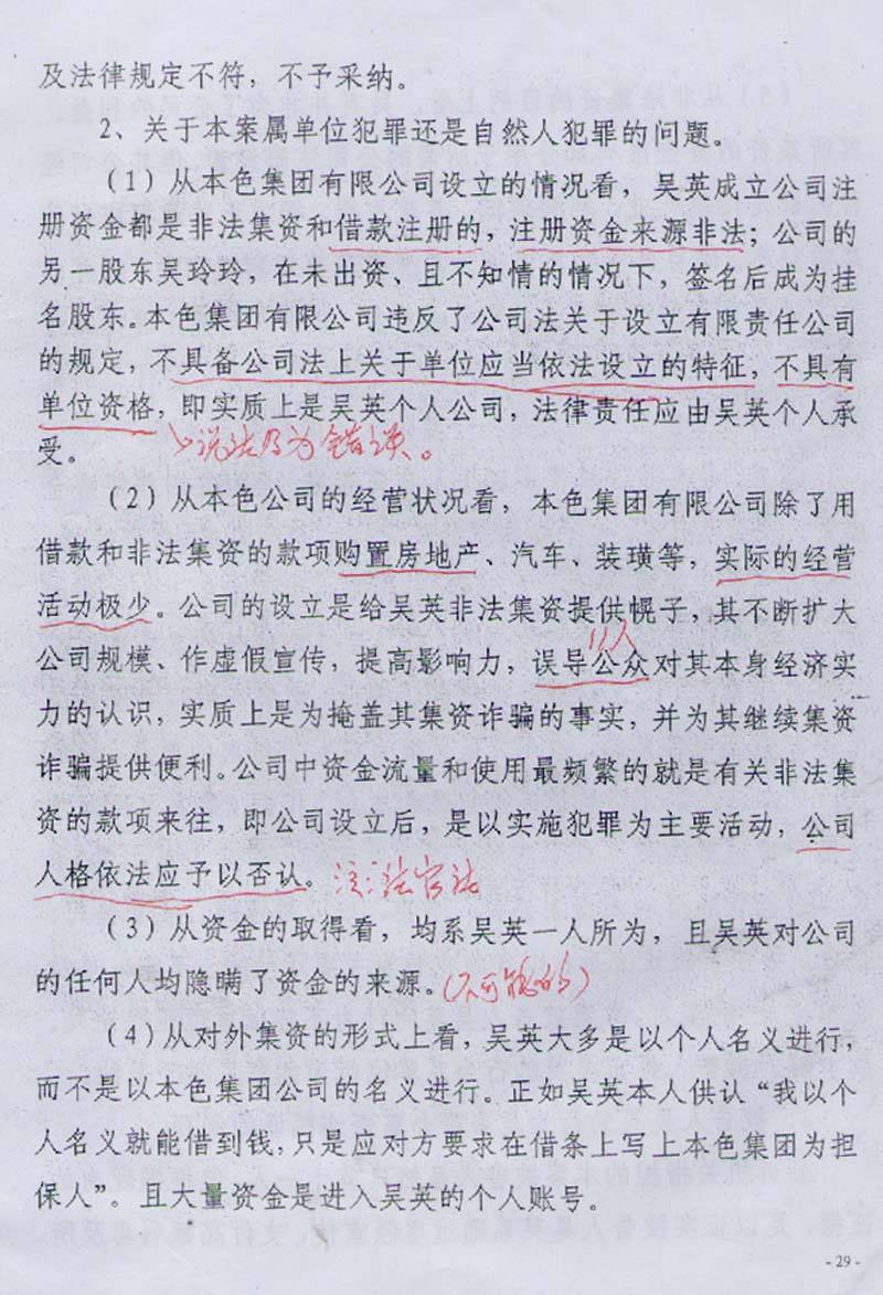 书中查明吴英以本色控股集团有限公司借钱买房、出售经营的唯一结论,应当确定为单位借款经营行为。