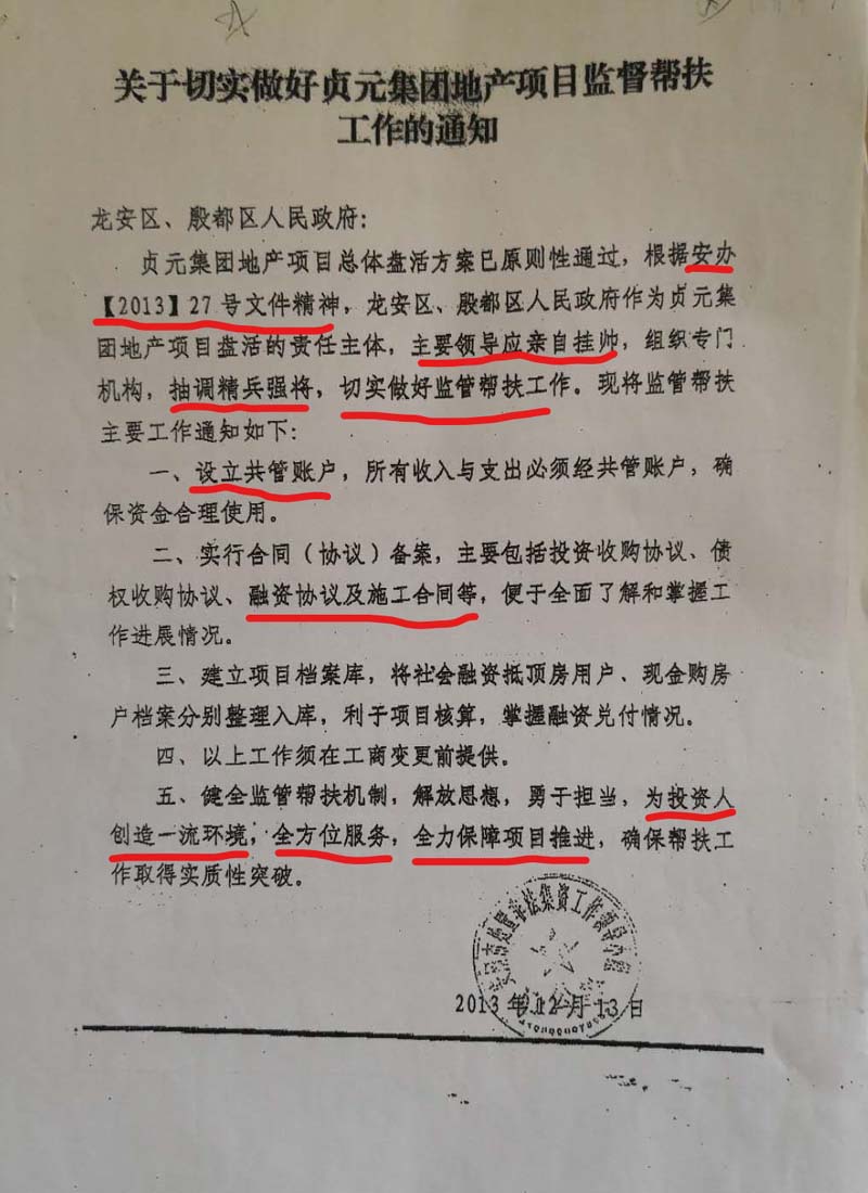 管帮扶;对安阳贞元置业有限公司进行监督帮扶(见两家的帮扶文件),强行用共管公司印章方