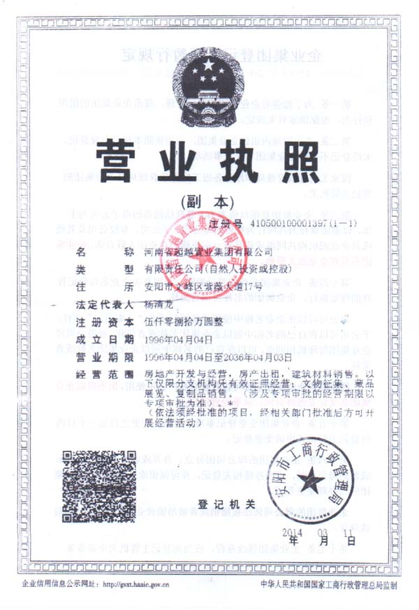 并参与河南省两届立法评审工作,全部企业财产高达数十亿元。并由河南省超越置业集团有