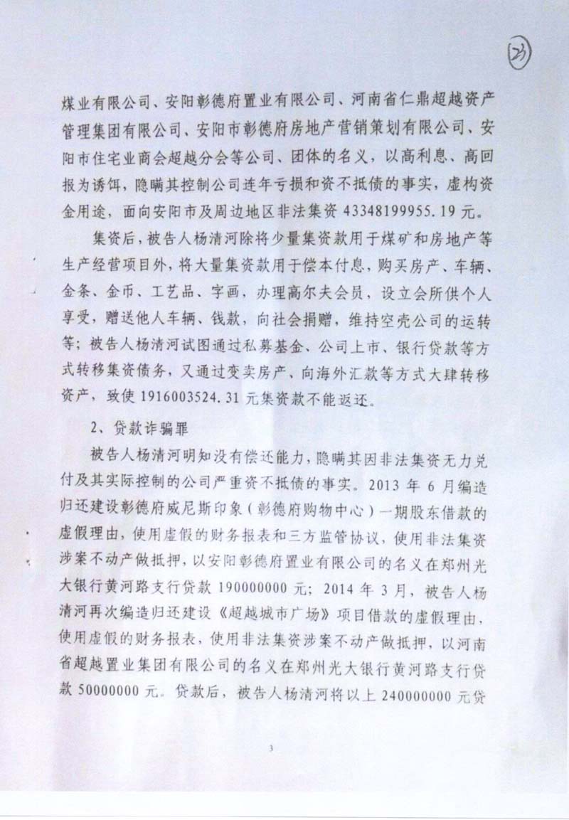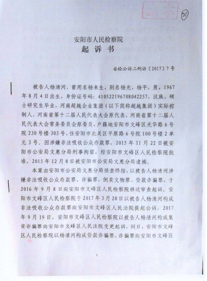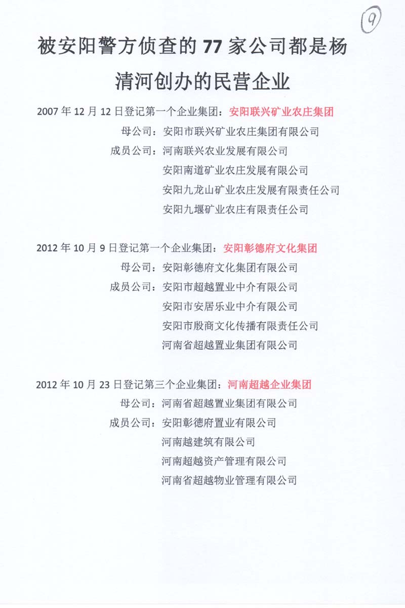2014年后,杨清河创办的安阳市彰德府置业有限公司等77家公司,在安阳市政府已对“河南超越
