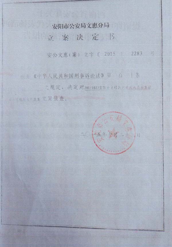 安阳政府“立案评审会议”决定对非法人主体“河南超越企业集团”立案后,公安机关按照政