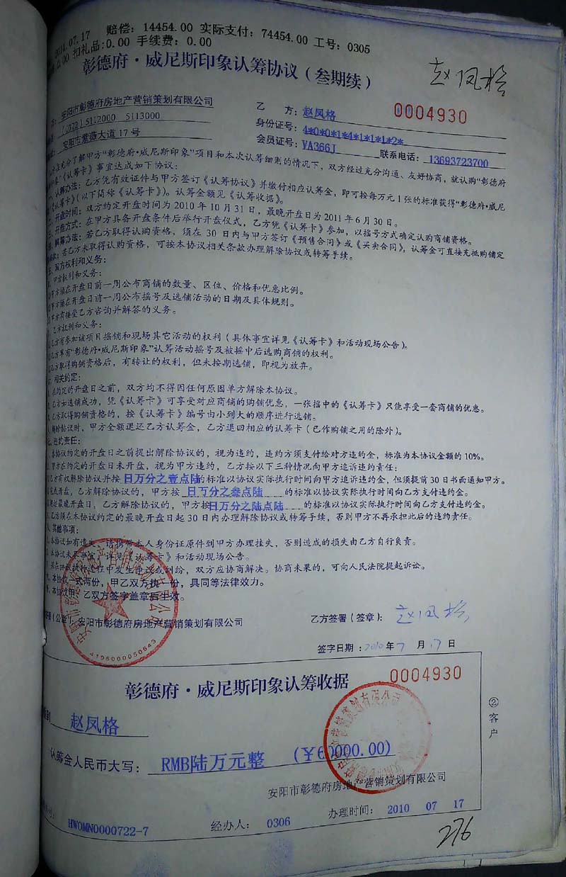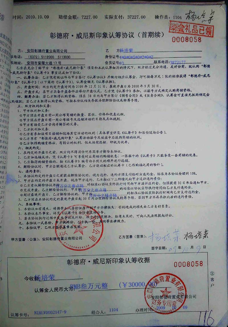 大投资(养鸡)户情绪激动,对安阳市彰德府置业有限公司等77家民营企业实际控制人杨清河产生