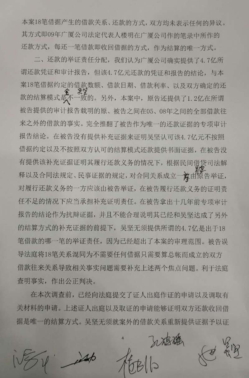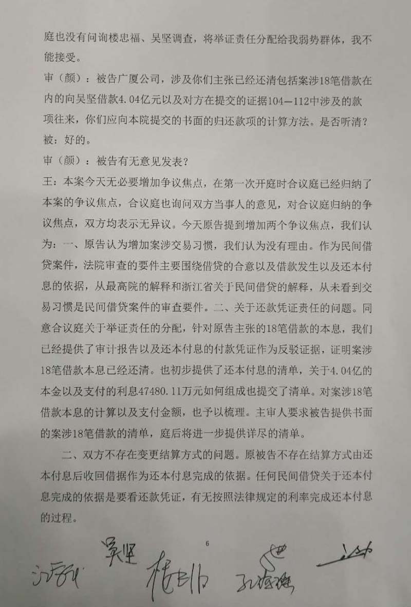 吴坚在质证中对广厦集团提供归还过吴坚5.28亿元的事实无异议,他表示曾收到过广厦集团的5.28亿元还款,并认为这与自己主张借给广厦集团七八个亿的总额相吻合。广厦的说法仅说明这5.28亿元与楼忠福所说的63笔借款中已归还的41笔有关,并未涉及吴坚起诉的18笔借款2.59亿,只要被告广厦集团不能出示18笔借据对应还款凭证,法院就应当判令被告广厦集团向原告吴坚归还2.59亿元本金及相应的利息。