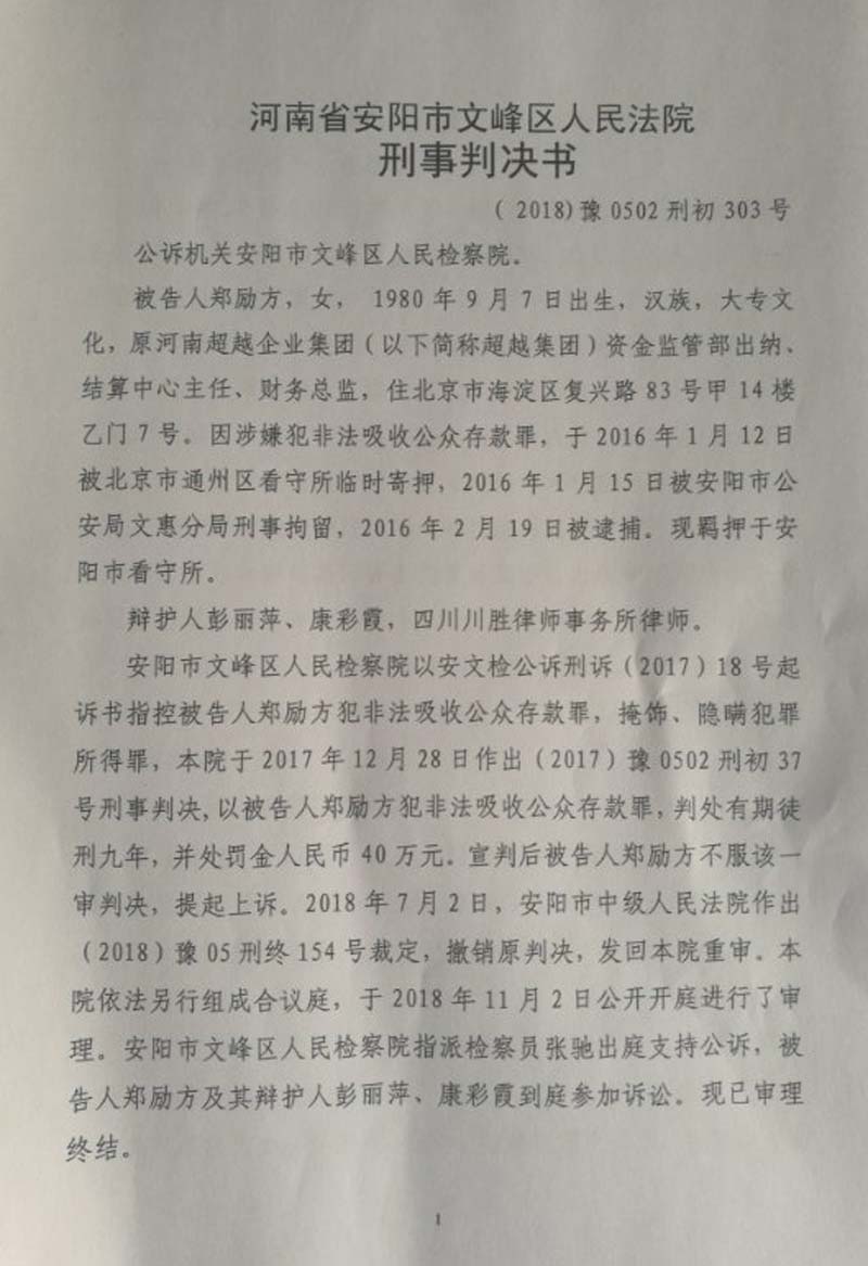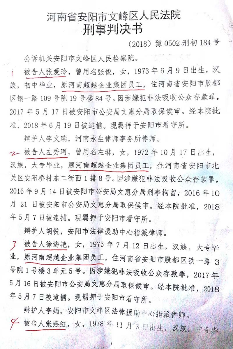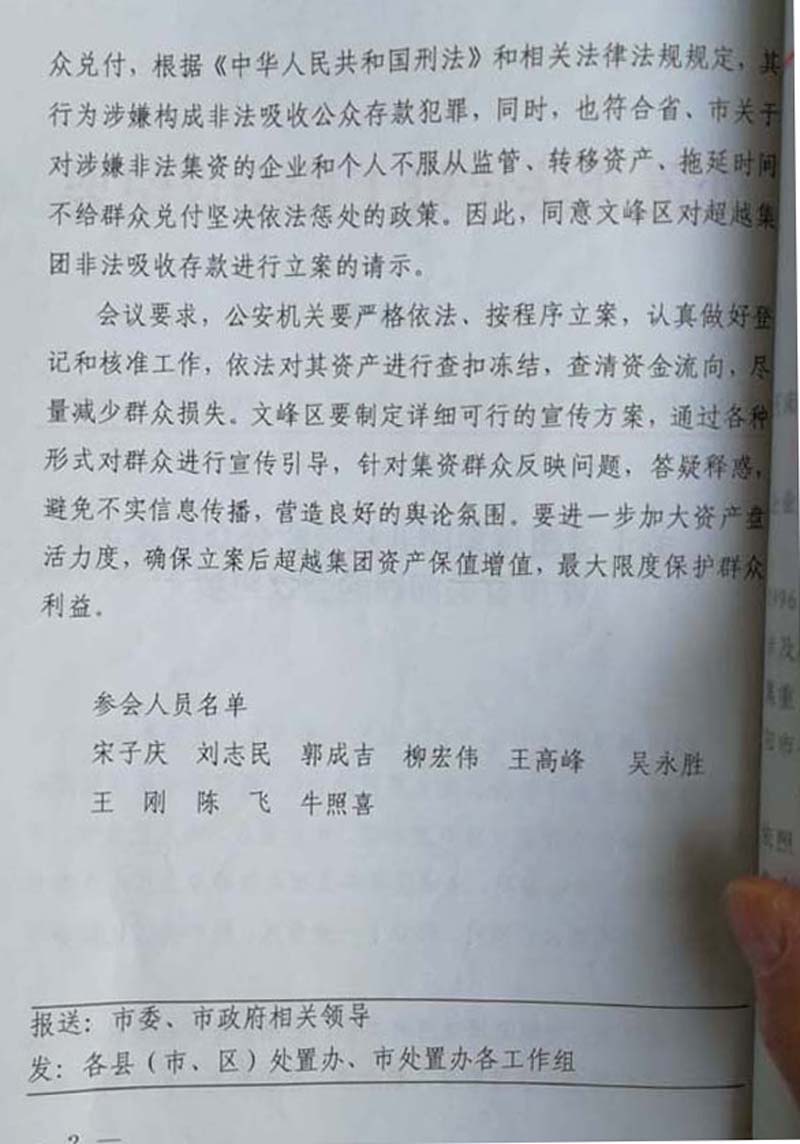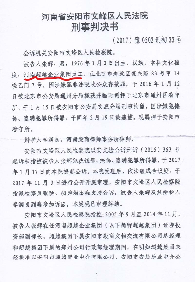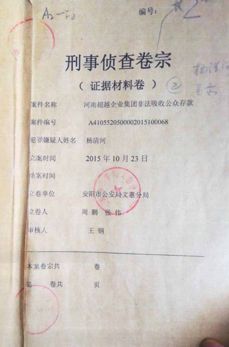 件名称“河南超越企业集团非法吸收公众存款”虚假事实(见卷宗封皮)。