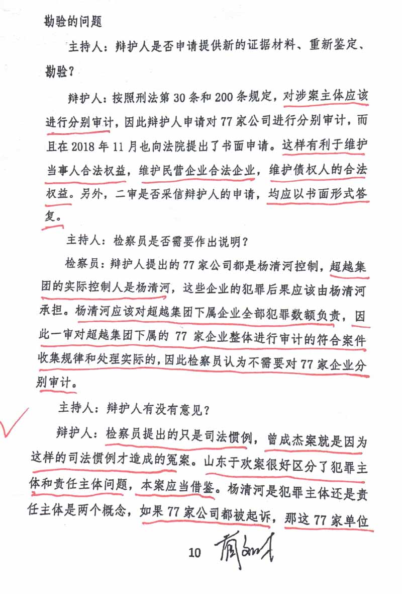 严格执法的理念,故意谎称“杨清河是民营企业家,应当对77家民营企业负责,起诉企业与起