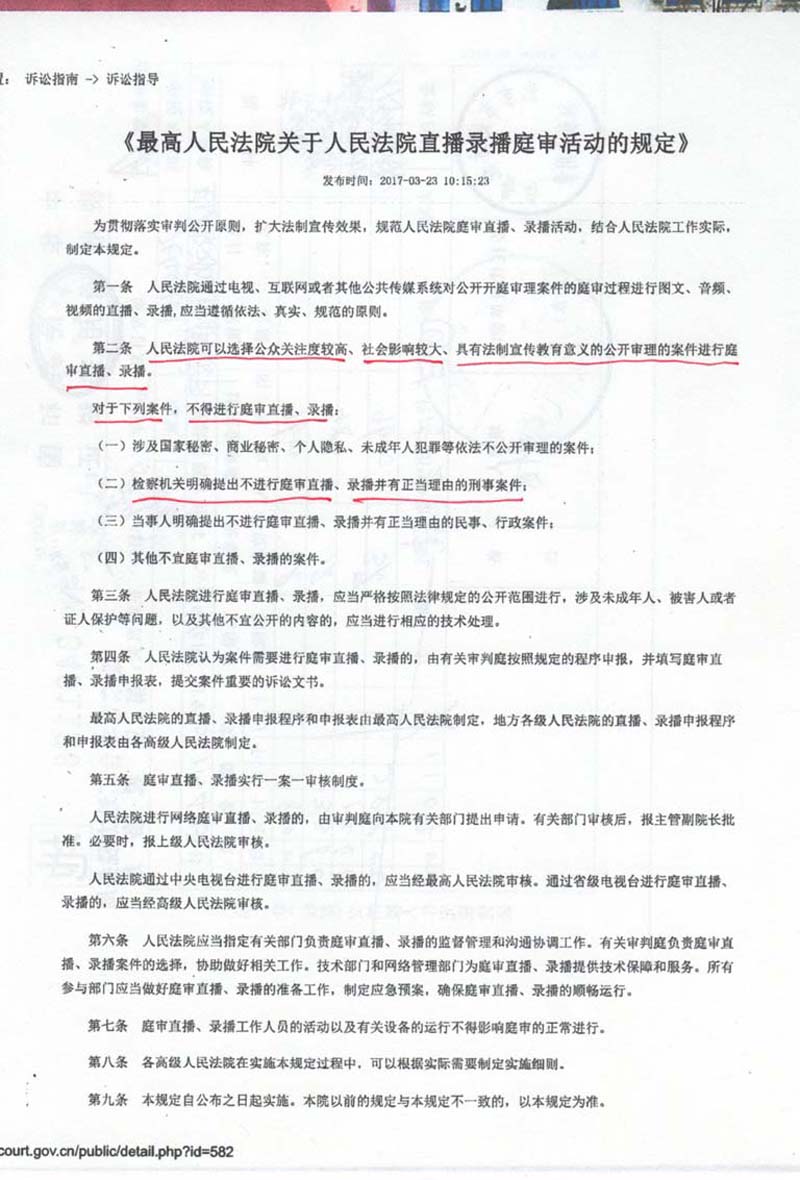 院直播录播庭审活动的规定》第二条“人民法院可以选择公众关注度较大、社会影响较大、具有法