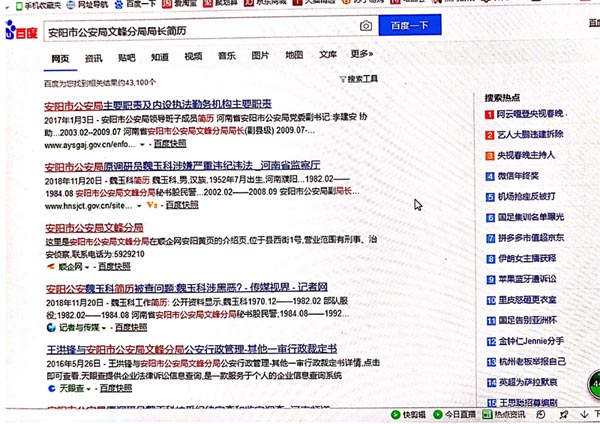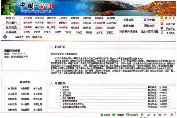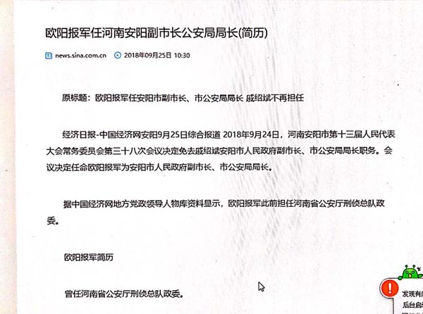 )打开网页看安阳市公安局局长简历,就可以通过第一层或第二层找到局长简历信息(见网络图片);(