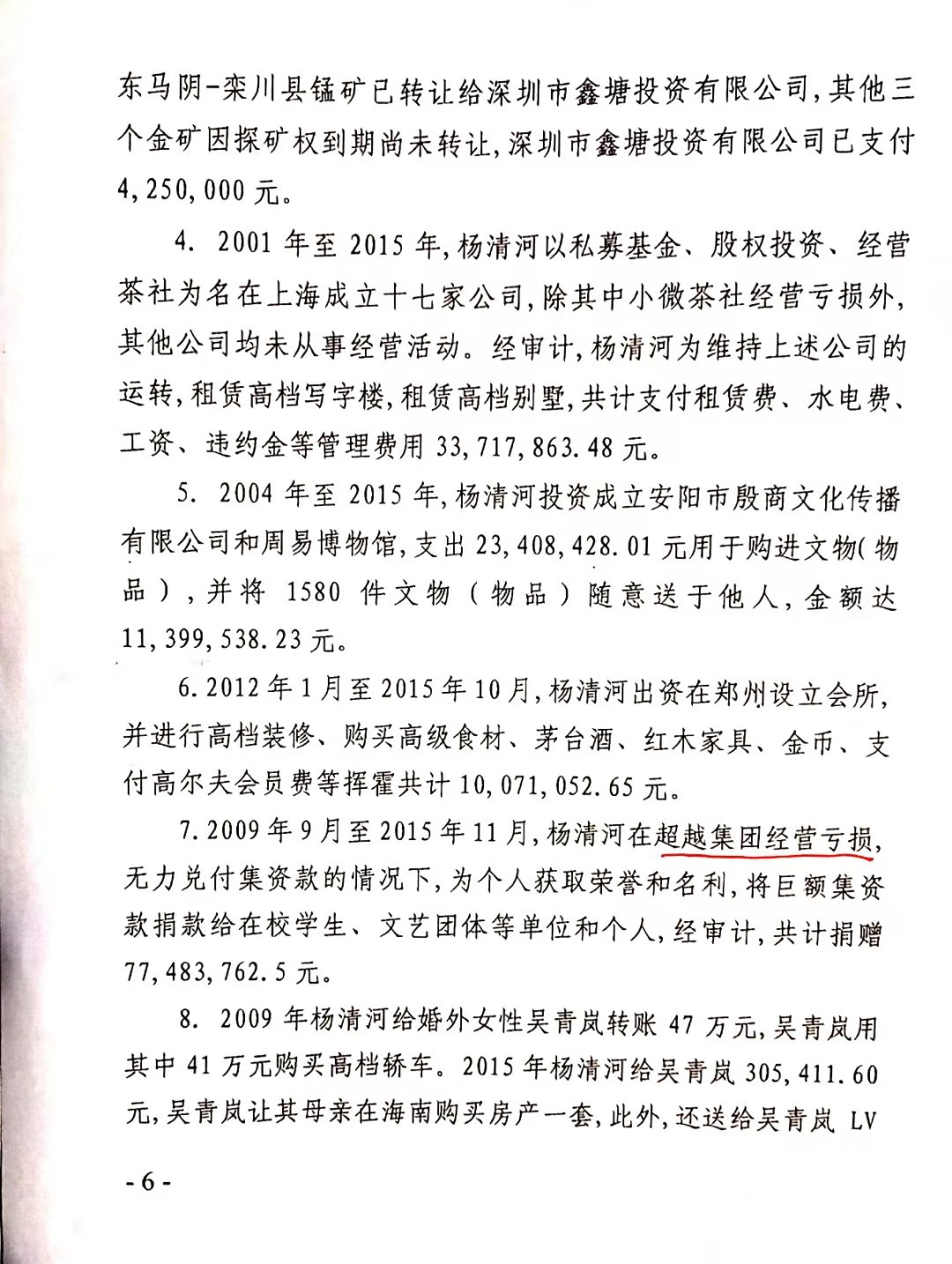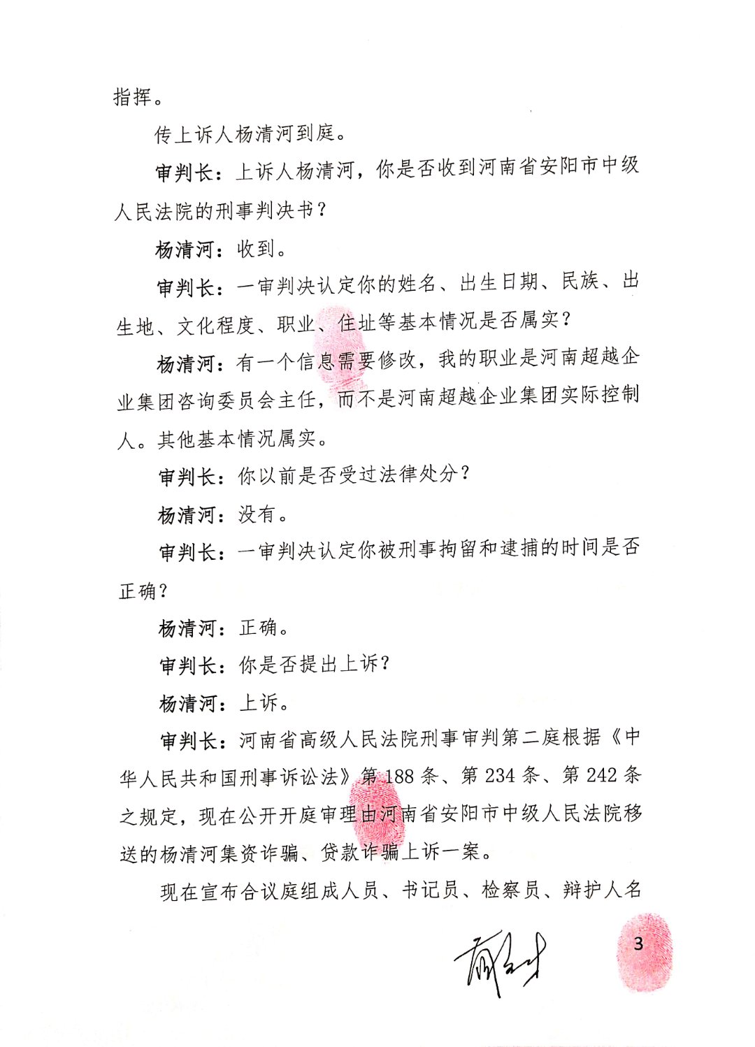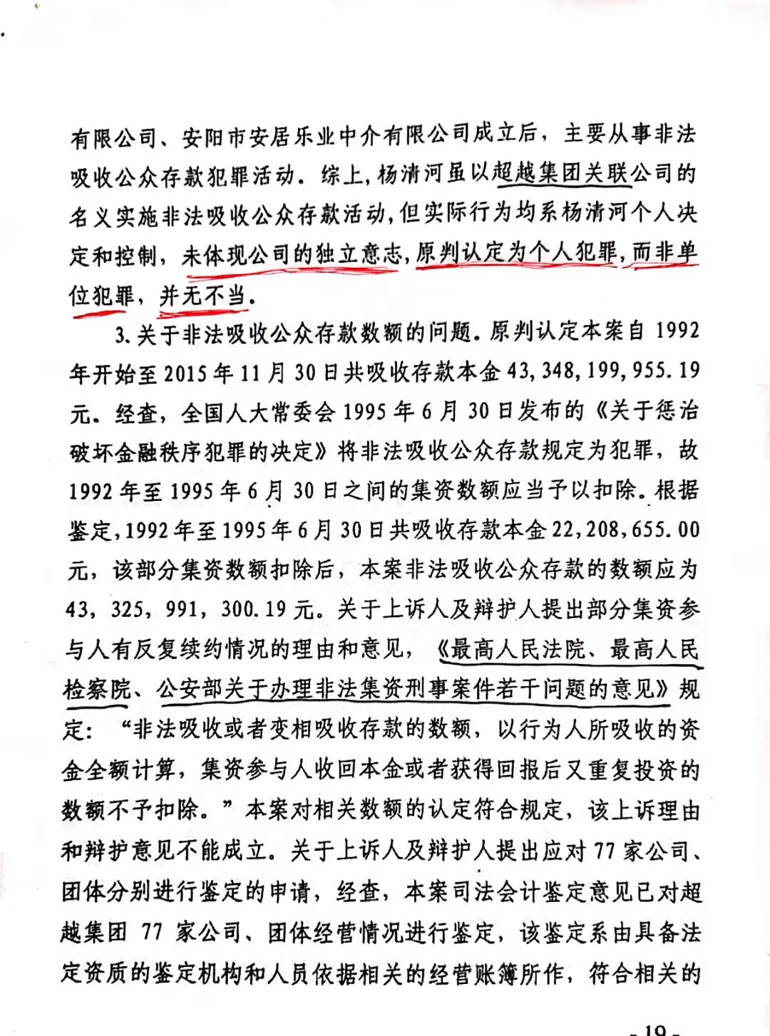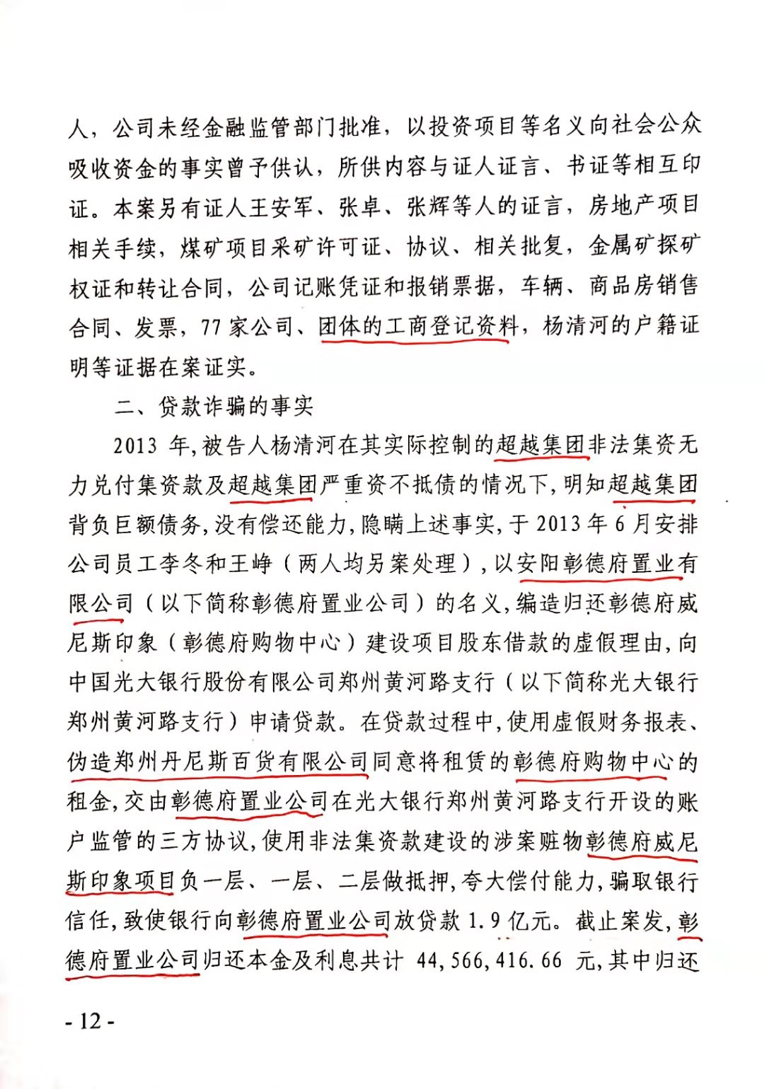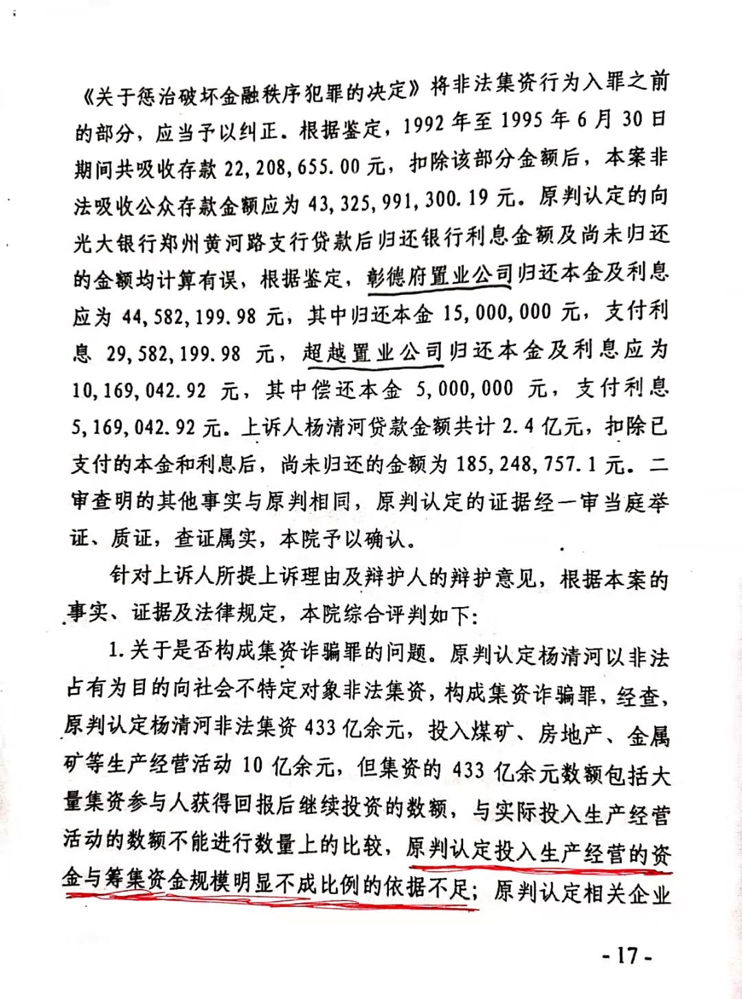 安阳市中级人民法院以(2017)豫05刑初50号一审刑事判决,判杨清河犯“集资诈骗罪,贷款诈骗罪”,支持了控方的部分起诉罪名。