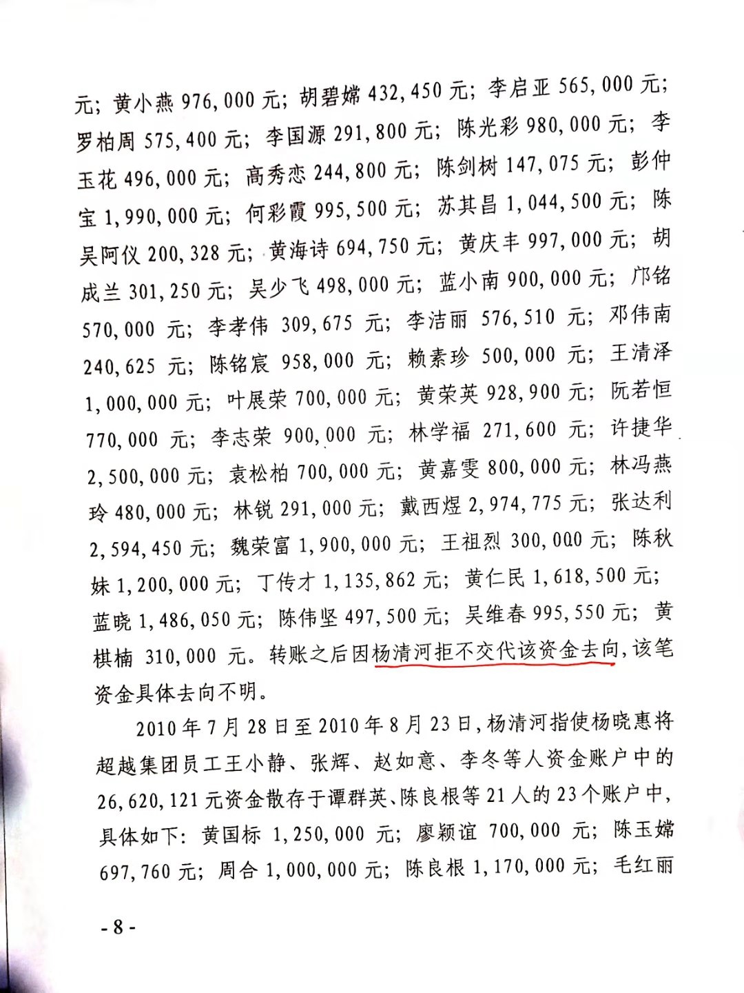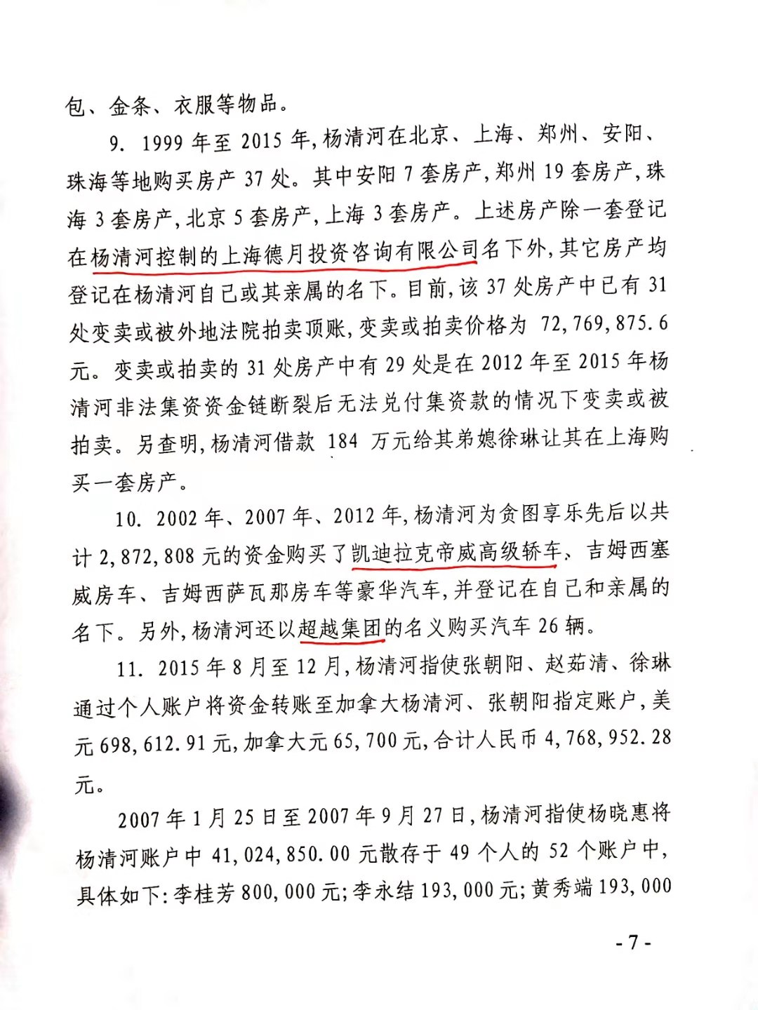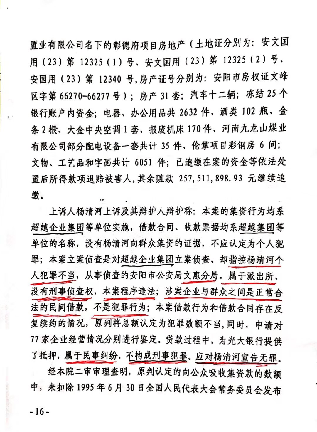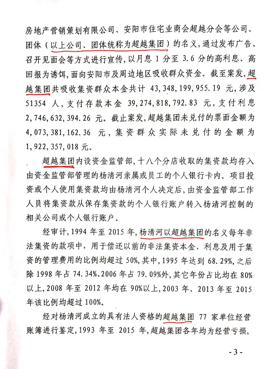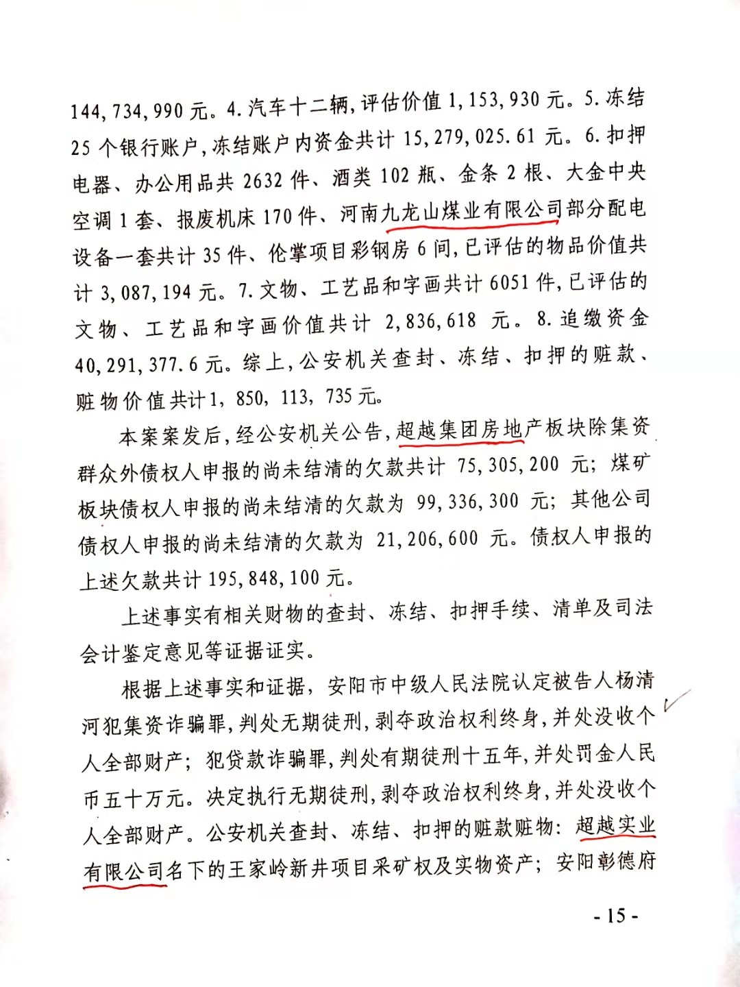 安阳市中级人民法院以(2017)豫05刑初50号一审刑事判决,判杨清河犯“集资诈骗罪,贷款诈骗罪”,支持了控方的部分起诉罪名。