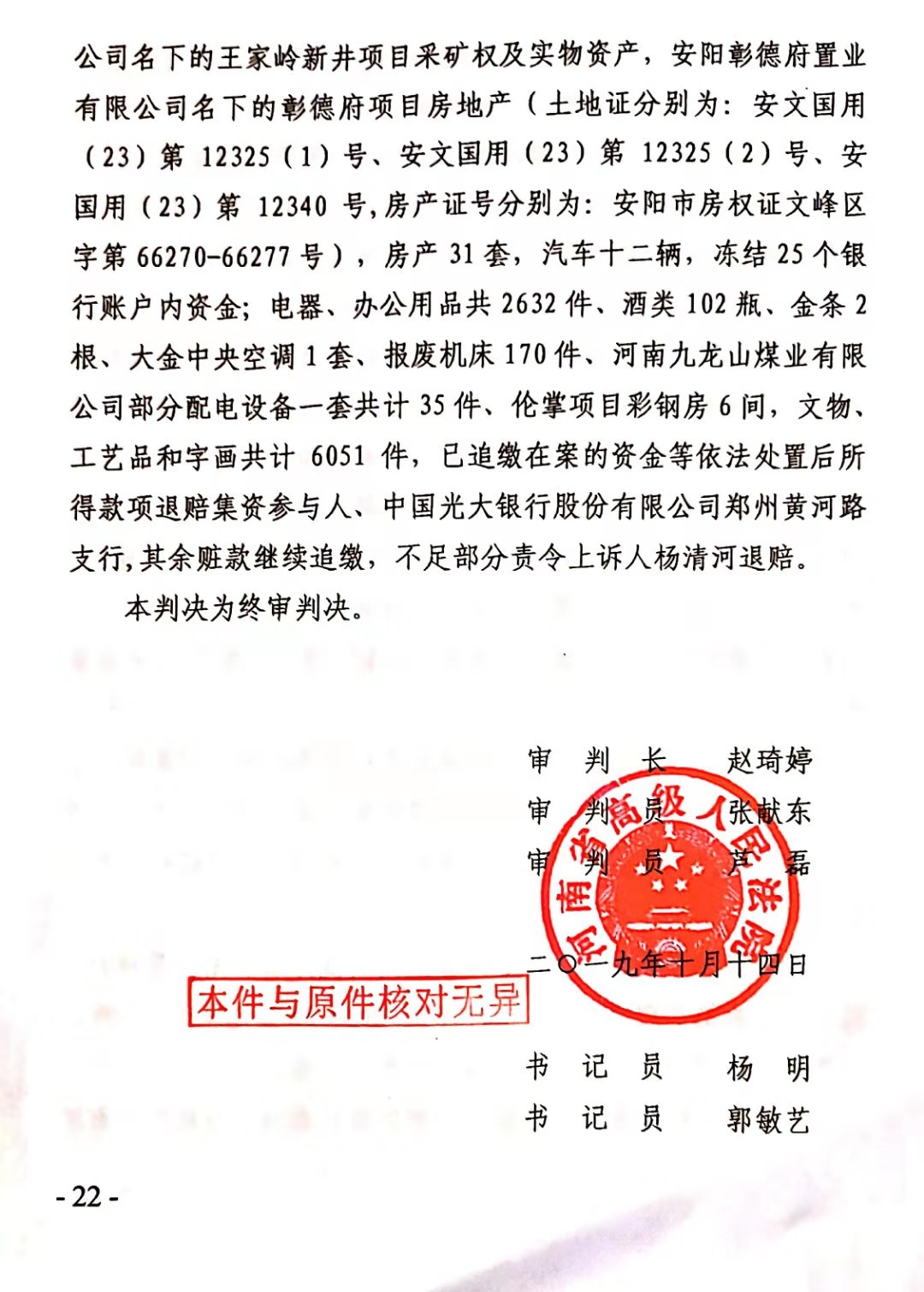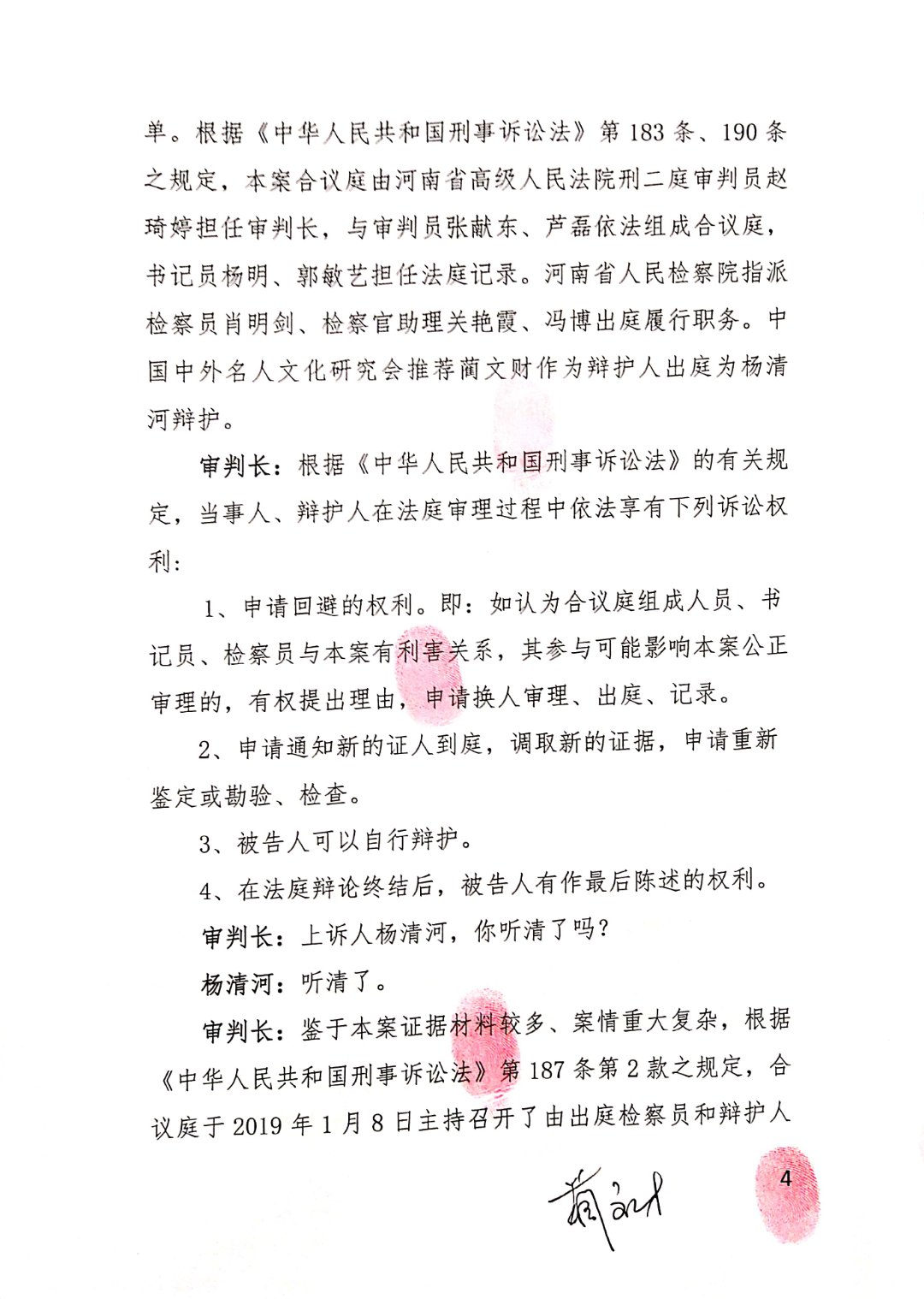 以上就是杨清河辩护人蔺文财收到河南省高级人民法院(2018)豫刑终371号刑事判决书,知道杨清河辩方大获全胜的情况下,不但不感谢二婶法院,反而还要实名控告二婶院长胡道才。