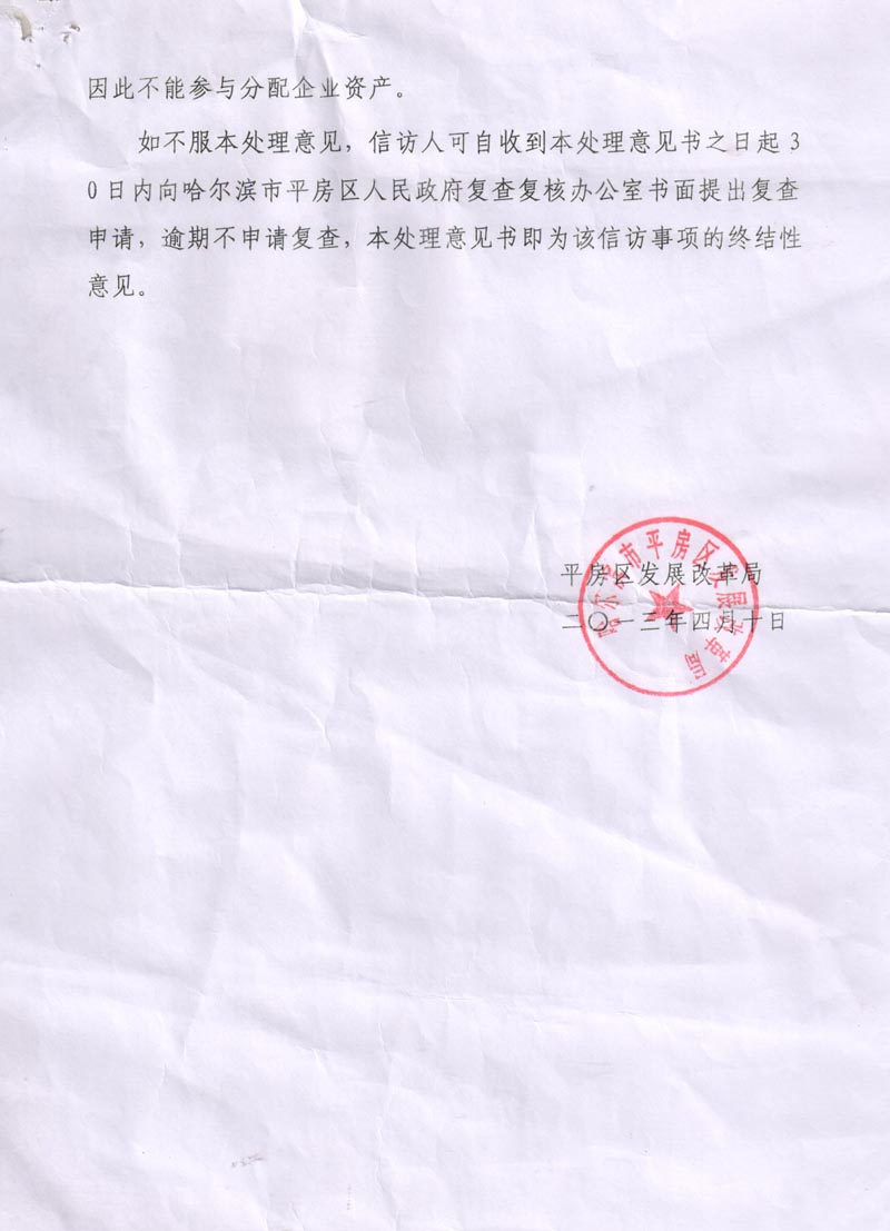民告官网友平房机械厂职工于2013/5/6 15:48:12说: