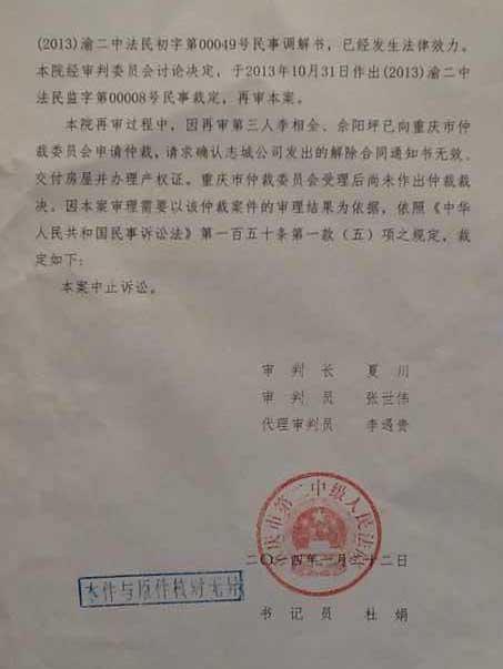 李某得知仲裁委不敢审理情况后,通过朋友关系找到重庆二中院院长,重庆二中院院长以发现本院发生法律效力的判决裁定确有错误为由,立即对本案裁定再审,最后中止审理。